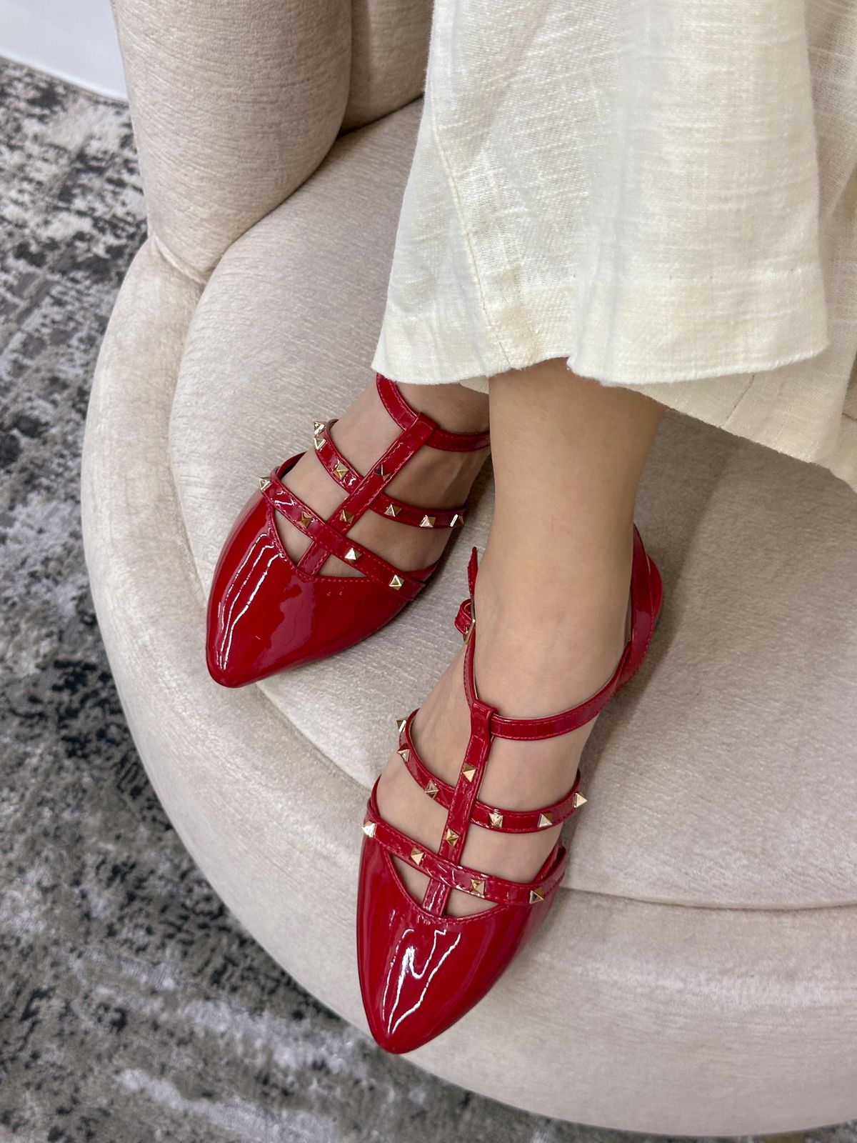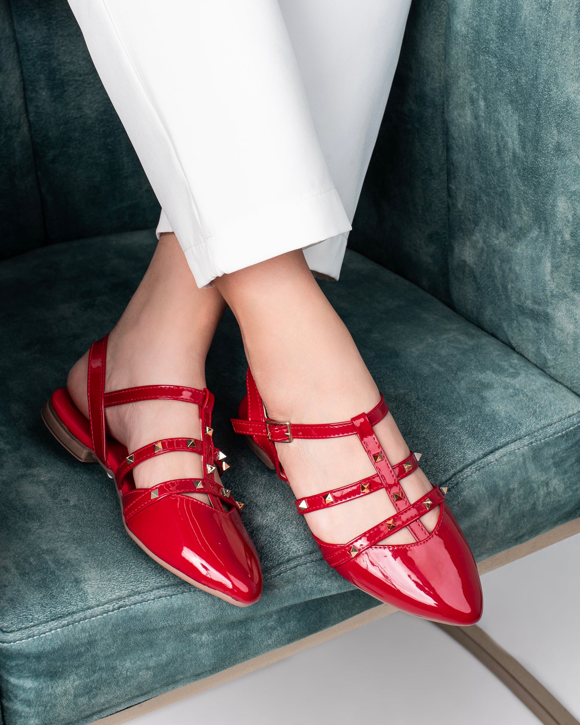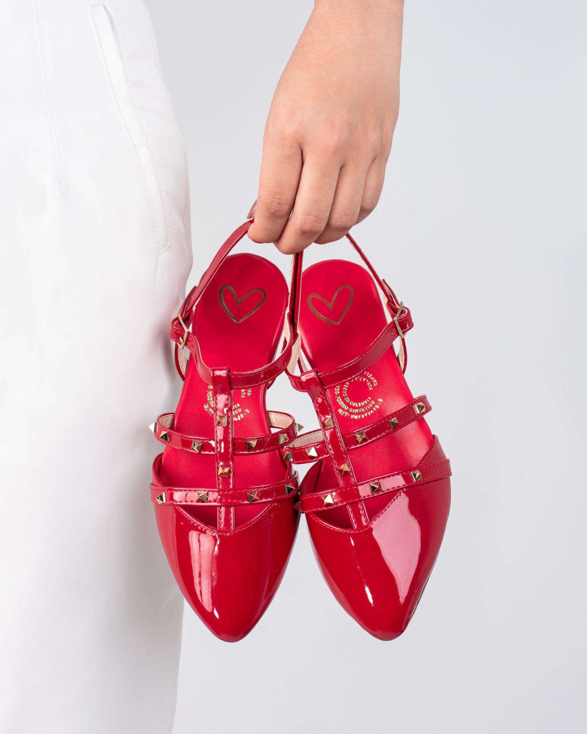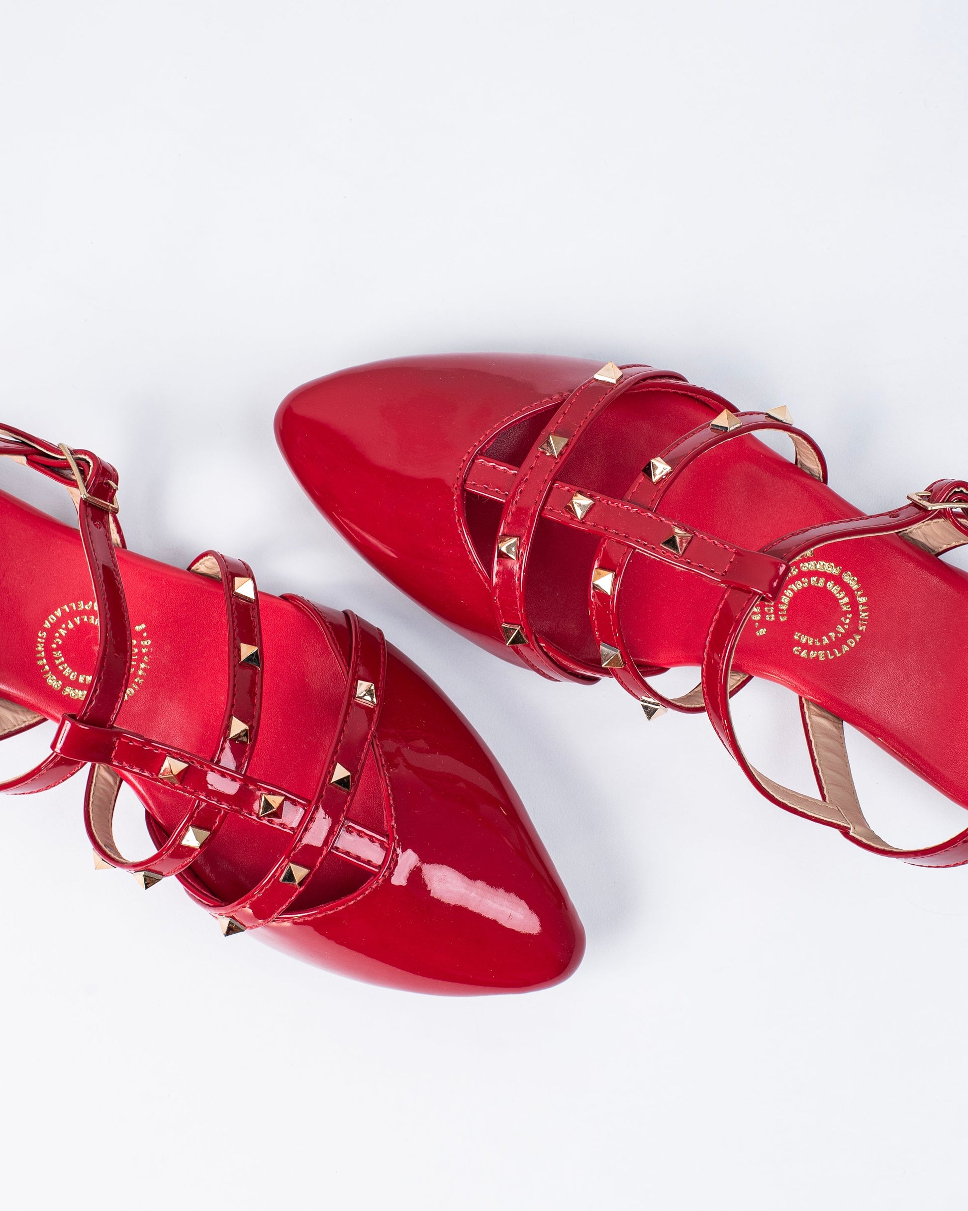 Estas baletas de punta con taches y correas combinan elegancia y audacia en un solo diseño. Con una estructura delicada pero sofisticada, su punta afilada y los detalles metálicos de los taches añaden un toque rebelde y moderno. Mientras que la combinación de los colores negro y rojo le da un contraste vibrante y llamativo. El negro aporta un aire de sofisticación y versatilidad, mientras que el rojo resalta con fuerza, creando una pieza que no pasará desapercibida. Perfectas para quienes buscan fusionar comodidad, estilo y actitud en su calzado.