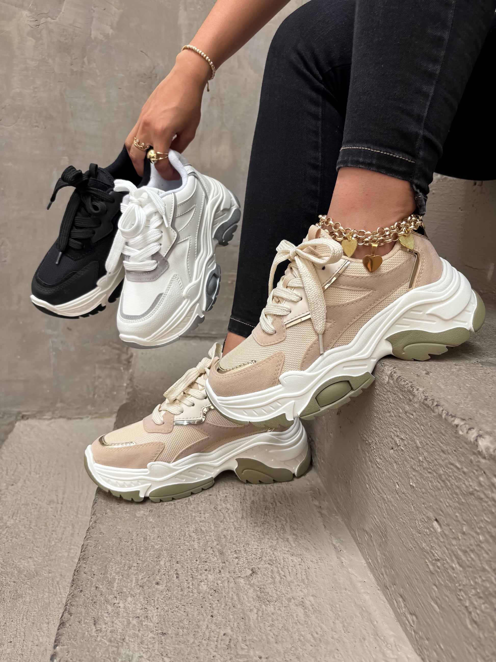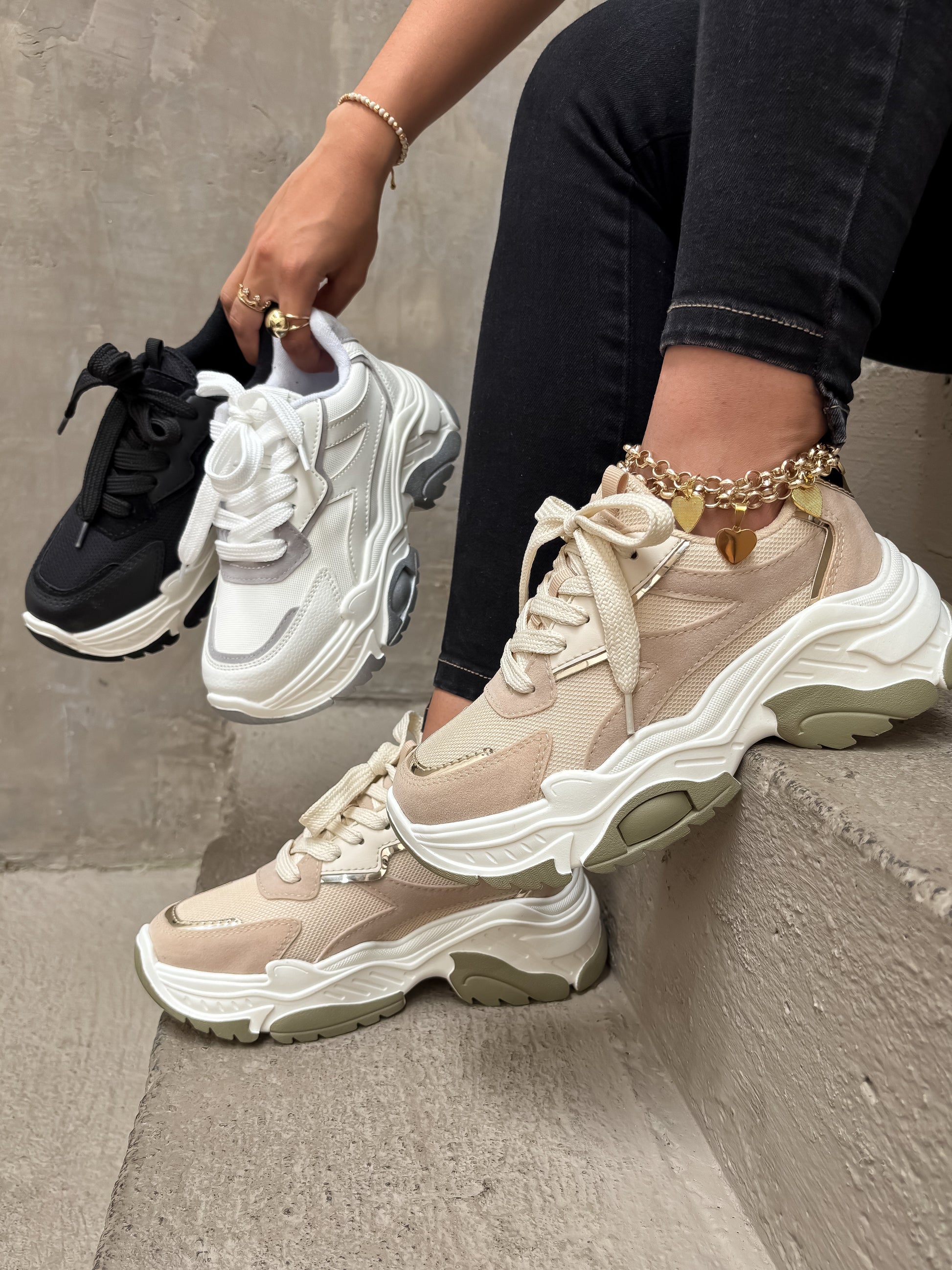 ¡Estos tenis en beige, negro y blanco con gris son todo lo que necesitas para elevar tus outfits! Con forro súper acolchado y plantilla Confort, ofrecen una comodidad increíble. Su diseño es perfecto para combinarlos con suelas altas y livianas. FULL TENDENCIA, ¡los vas a AMAR con todos tus looks casuales!